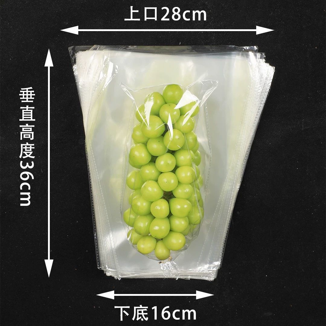 阳光玫瑰专用包装袋,梯形透明 OPP 防雾袋,打孔透气设计,高效防雾不结露,透气保鲜不闷果,食品级透明材质,展示清晰、耐撕耐用,适用于阳光玫瑰、葡萄等鲜果包装与商超陈列,是水果保鲜、打包、运输、零售的优选透明防雾透气包装袋。